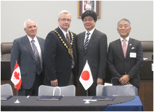 On July 17, Consul-General of Japan Yasunori Nakayama attended the official signing of an MOU for the implementation of a smart community joint project among Japan’s New Energy and Industrial Technology Development Organization (NEDO), the City of Oshawa and the Oshawa PUC Energy Services (OPUC) .