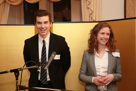The University of Toronto's Mr. Brett Hyska and Ms. Amy Bronson share the podium.