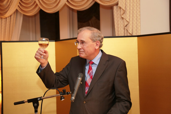 Dr. Louis Pauly, Chair of the U of T's Department of Political Science, leads attendants in a toast.