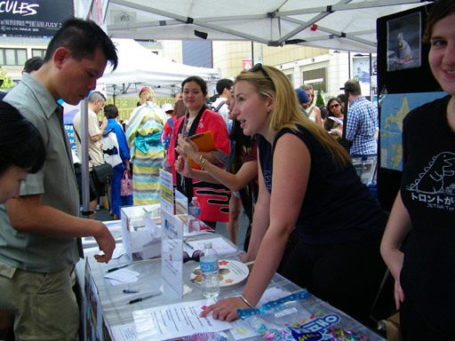 Matsuri: The 2nd Toronto Japanese Summer Festival was held in Yonge-Dundas Square on July 27. The Consulate General of Japan provided information on Japan along with the Japan National Tourism Organization and the Toronto Chapter of the JET Alumni Association, and also organized Matsuri Odori – Interactive Dance. The dance was a traditional Japanese folk dance with over 80 cosplayers and volunteers dancing alongside general visitors to the festival. It proved to be a highlight of the day.