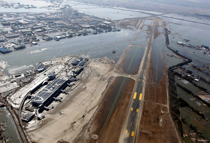 Bottom: Sendai Airport resumes operations one month after the tsunami.