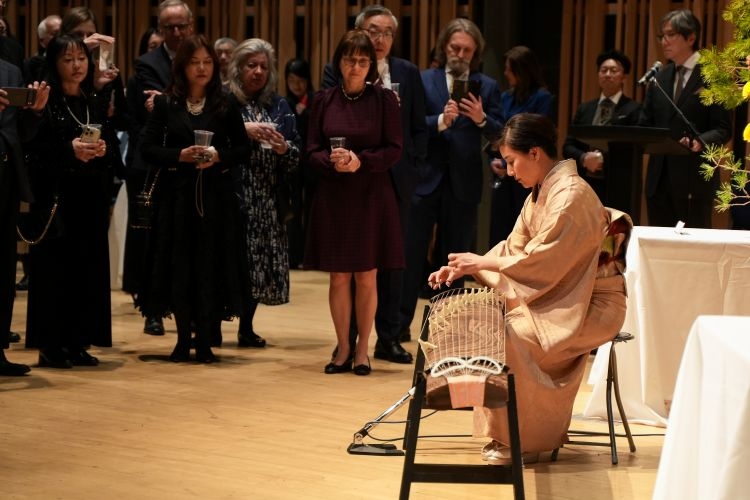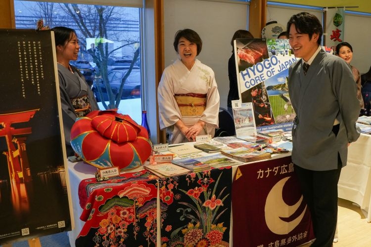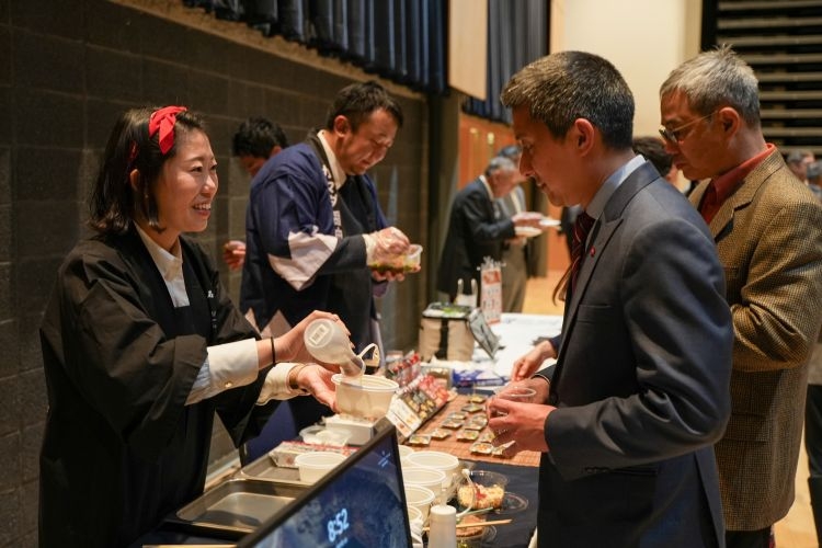 The reception featured a Japanese drum performance by Kyowa Taiko; a performance on the koto by Ms. Fujii Aiko; and the singing of the national anthem of Japan by Ms. Yasufuku Chihiro and that of Canada by Mr. Mathias Séror. The occasion also promoted the International Horticultural Expo in Yokohama (GREENxEXPO 2027) with works of ikebana and bonsai on display by the Ikenobo Ikebana Society of Toronto; the Toronto Chapter of the Ohara School of Ikebana; Sogetsu Ikebana Toronto Branch; Sogetsu Ikebana Toronto East Branch; and the Toronto Bonsai Society. An ikebana demonstration was also held by Ikebana International Toronto Chapter President Trish Chan. The high-quality Japanese food enjoyed by the guests included various dishes which used Kamada soy sauce from Kagawa Prefecture, as well as Ishimaru udon noodles from the same region. Booths established by the Toronto Prefectural Associations and Federations, as well as by the corporations UNIQLO and Deloitte Canada , also attracted the guests’ attention.