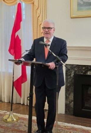 On the same day, Consul-General Matsunaga hosted a reception at his official residence, welcoming representatives from various educational institutions, including C. W. Jefferys Collegiate Institute, St. Robert Catholic High School, and the Munk School of Global Affairs & Public Policy at the University of Toronto, with whom Hachioji Higashi High School conducts educational exchanges. Minister Calandra attended the reception and offered words of encouragement, expressing his hope that this visit would provide an opportunity for students from Ontario and Japan to deepen their understanding of each other's cultures. Mr. Keith Irish, City Councillor, Markham Ward 1, and Ms. Stacey Zucker, Interim Director of Education, Toronto District School Board, also shared words of encouragement for the students and expressed their expectations for the further development of the partnership. At the reception, student representatives from Hachioji Higashi High School expressed their aspirations, and participants engaged in a lively exchange of views on promoting future exchanges.