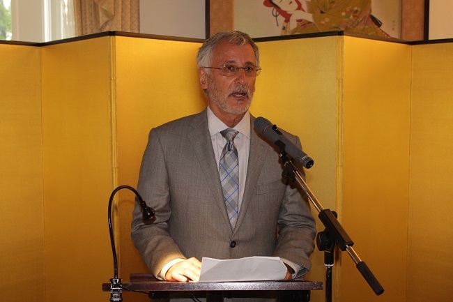 Mr. Gary Kawaguchi, President of the Japanese Canadian Cultural Centre, gives remarks before raising a toast to the players.