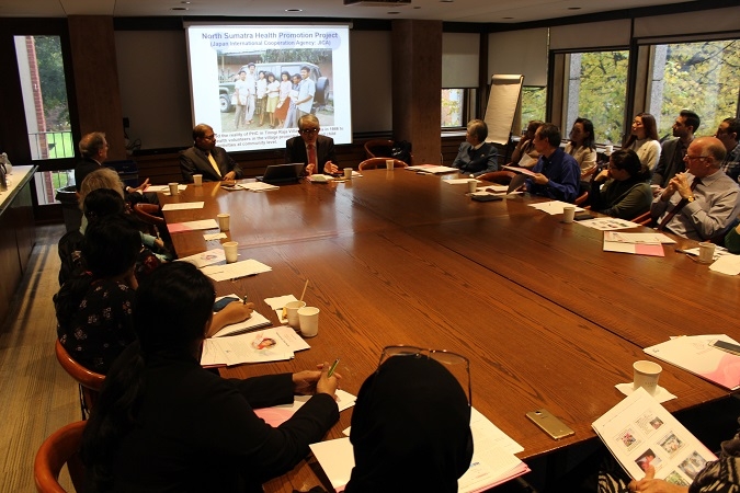 On Nov. 2, the second instalment of the JAPAN NOW Lecture series for the current academic year featured Osaka University Professor Emeritus and Konan Women’s University Professor Yasuhide Nakamura. Dr. Nakamura’s presentation was on the Maternal and Child Health (MCH) Handbook, a Japanese initiative dating back to 1948 which today is being used in Indonesia and other developing countries thanks to the Dr. Nakamura’s efforts via JICA (Japan International Cooperation Agency). One of Dr. Nakamura’s former students, University of Toronto Assistant Professor Shafi Bhuiyan also presented on how the Handbook is being used in his home country of Bangladesh, and on the effectiveness of its content being tailored to meet specific needs of the country where it is being used.