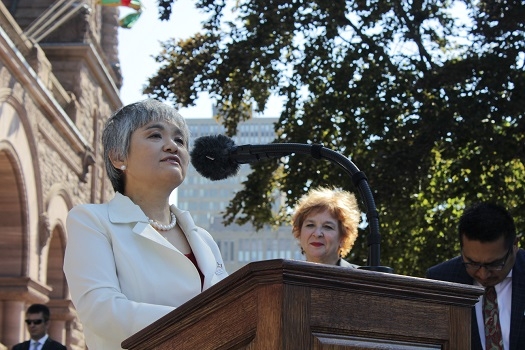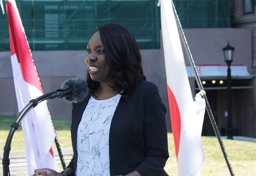 MPP Mitzie Hunter of the Ontario Liberal Party gives remarks. Within her riding is the