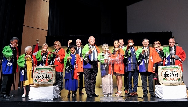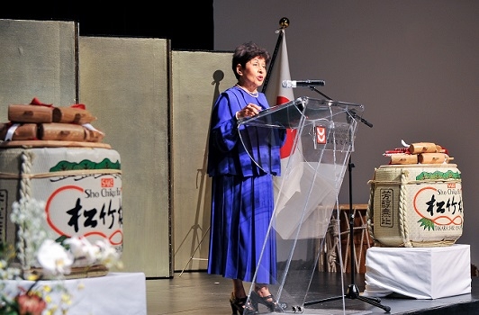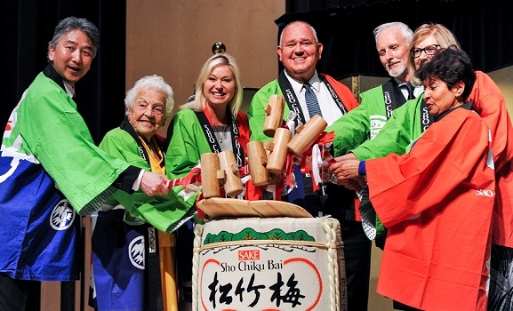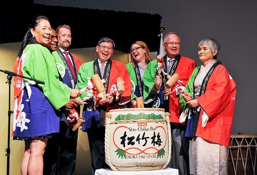 After a ceremonial saké barrel opening, Consul-General of Japan Takako Ito and