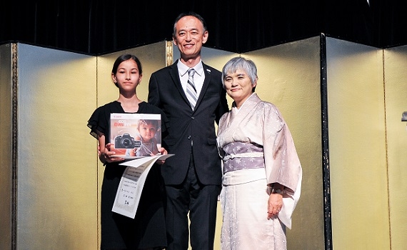 Ms. Maya Snyder, first place winner in the contest’s Youth category (left), with Mr. Taizaburo Egawa,