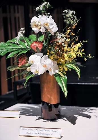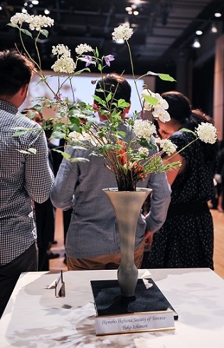 Flower arrangements were provided by the local three schools of ikebana. From left: Sogetsu, Ikenobo, Ohara.