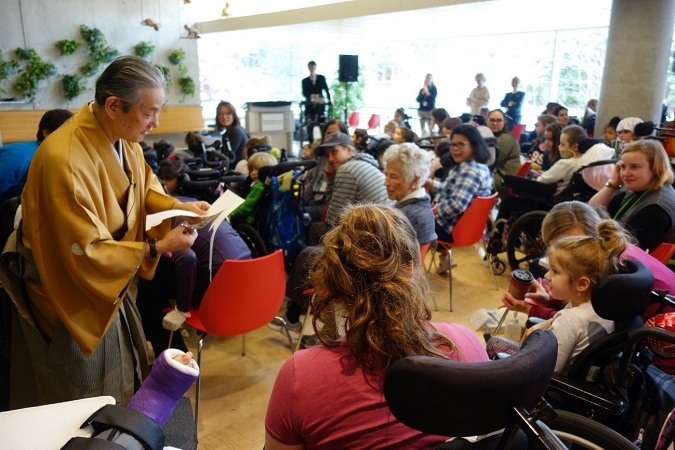 Master Hayashiya Imamaru performed Kamikiri paper cutting at the Holland Bloorview Kids Rehabilitation Hospital.