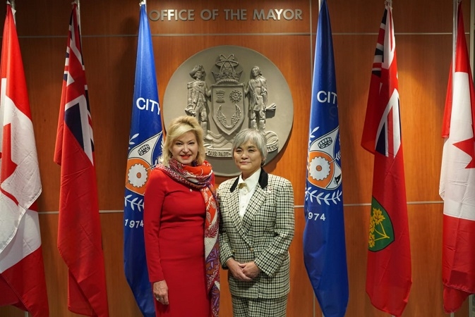伊藤総領事のボニー・クロンビー・ミシサガ市長表敬訪問 平成30年12月21日 12月18日、伊藤総領事は、ボニー・クロンビー・ミシサガ市長を表敬し、日本とミシサガ市との経済関係の強化に向けて意見交換を行いました。